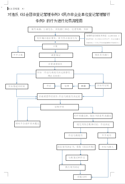 对违反《社会团体登记管理条例》《民办非企业单位登记管理暂行条例》的行为进行处罚流程图