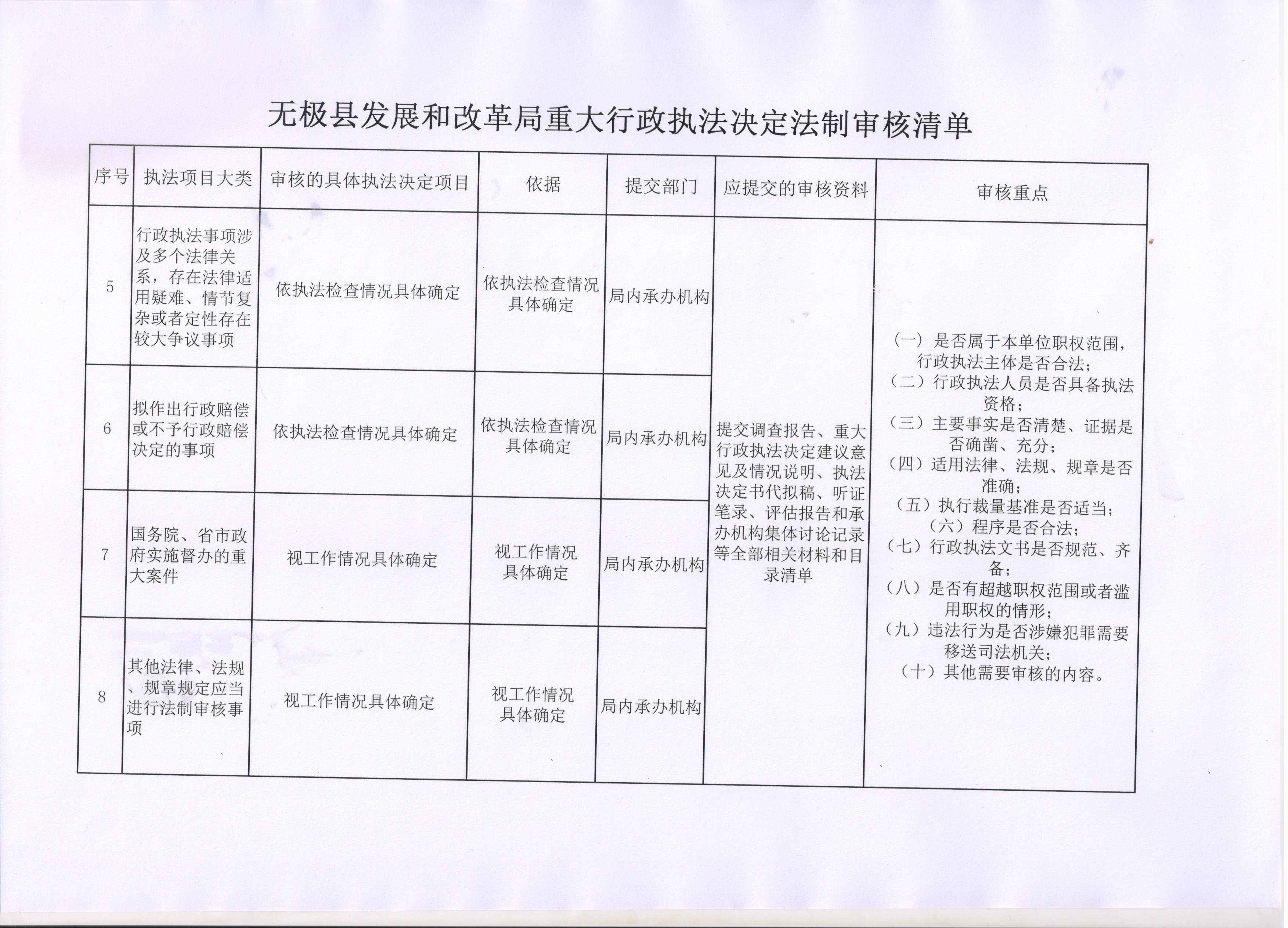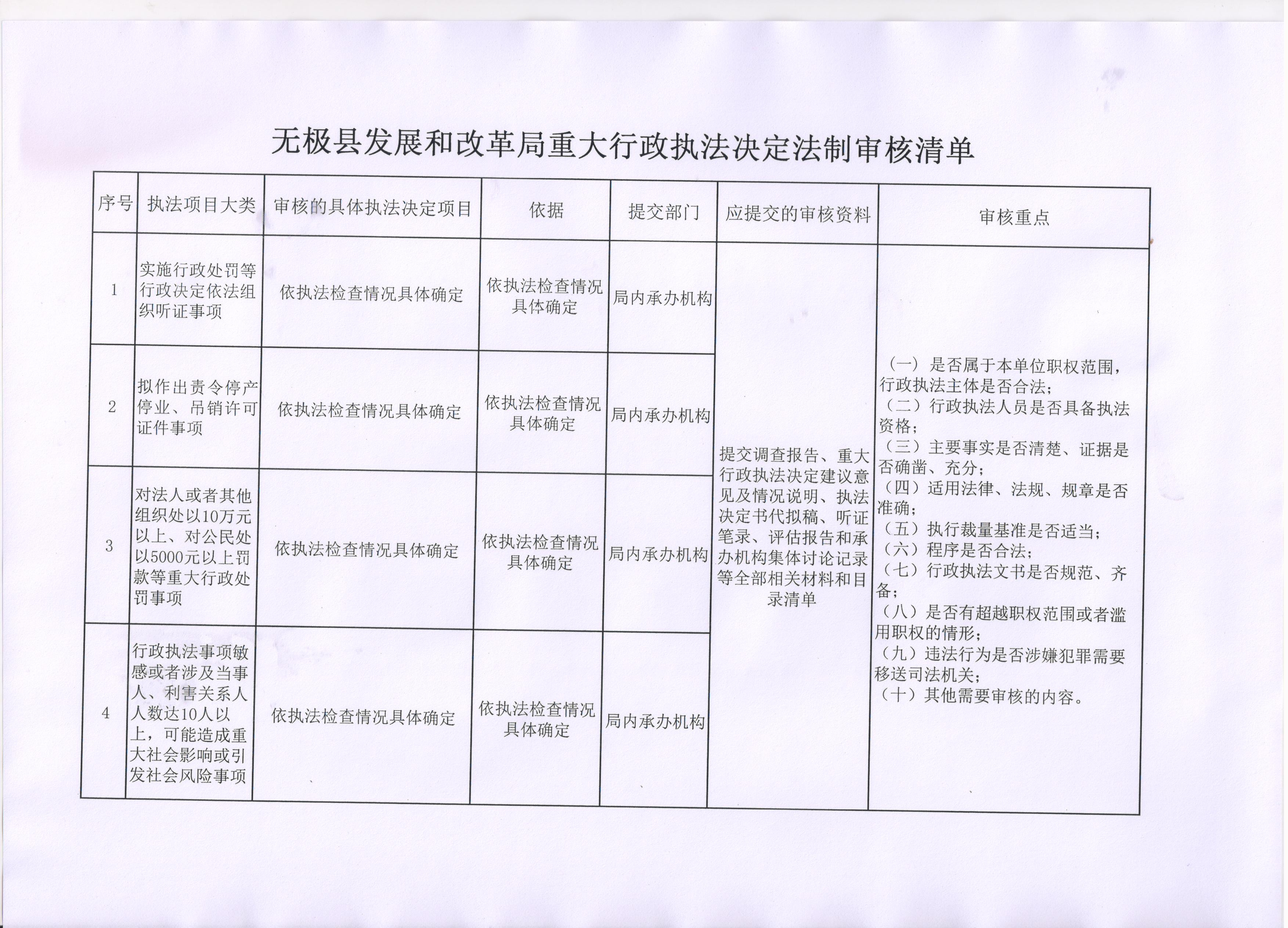 无极县发展和改革局重大执法决定法制审核事项清单