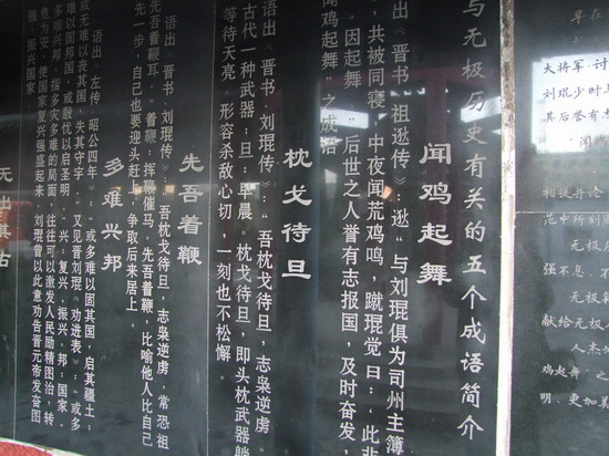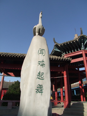 刘琨(271-318年),字越石,中山魏昌(今河北无极)人,西汉中山靖王刘胜的后裔。文学家、音乐家和爱国将领。在其一生中留下了“闻鸡起舞”等四个成语典故,对后世产生了广泛影响。在刘琨身上体现着“慷慨悲歌”的燕赵精神,对后世影响很大。“闻鸡起舞”、“枕戈待旦”、“先吾著鞭”和“多难兴邦”等成语典故即源于刘琨。其中“闻鸡起舞”在我国具有广泛的传播。在刘琨的故里无极,人们世世代代纪念这位民族英雄,传颂着刘琨闻鸡起舞的故事。