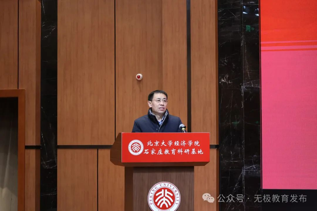 2024年1月24日,北京大学经济学院党委书记崔建华一行4人在我县北京大学经济学院教科研基地会议中心,面向高三师生家长,开展了以“追求卓越 与时代同行”为主题的专题讲座。无极县政府副县长刘云芝、教育局党组书记、局长李占飞和无极中学、二中部分家长、学生、教师现场参与讲座,同时,此次专题讲座还在无极中学和无极二中分别设立线上分会场,同步直播讲座内容。