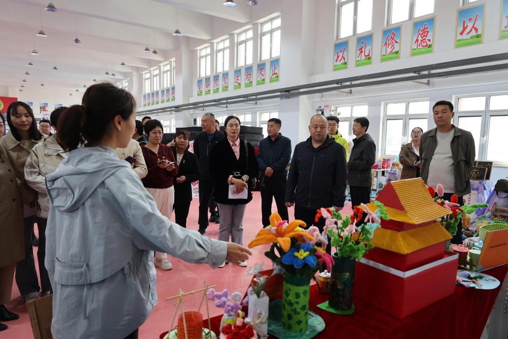 在劳动成果展示区,各校精心布置的展台宛如微缩的创意工坊。各个学校的展位上有色彩斑斓的绳结、巧夺天工的剪纸、工艺精巧的编织品……展示了各学校特色劳动教育的丰硕成果。