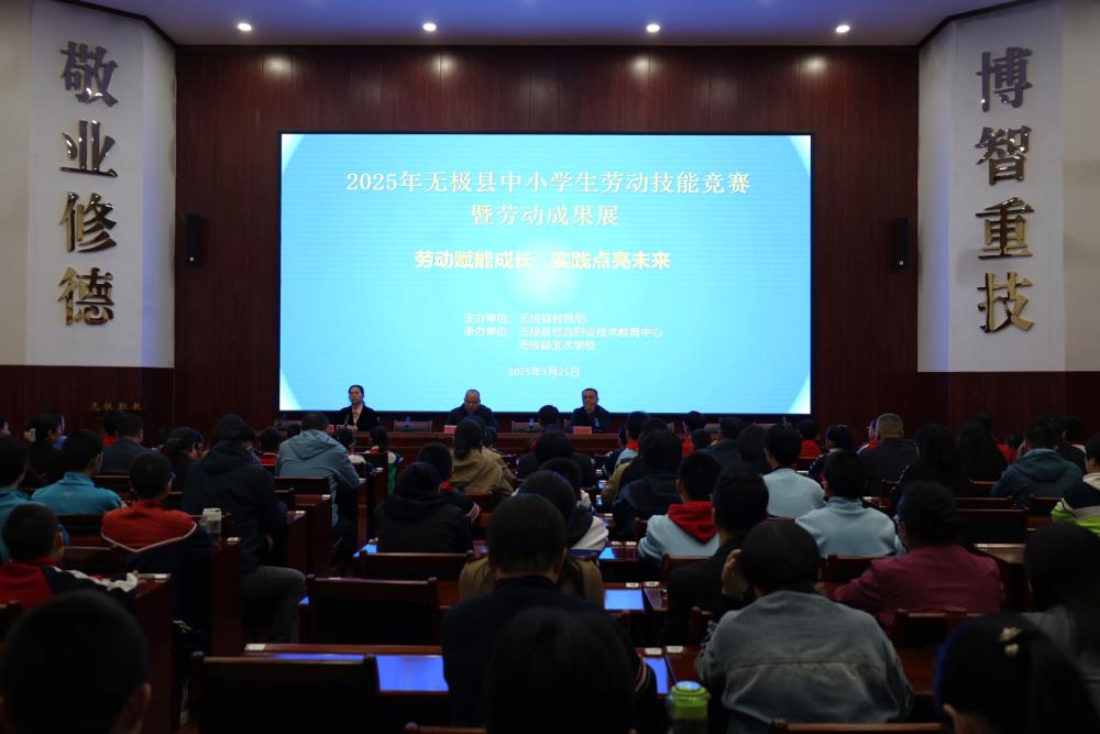 为全面落实素质教育,提升学生的劳动素质帮助学生树立正确的劳动观念、培养良好的劳动习惯,2025年3月25日,由无极县教育局主办,无极县职教中心、无极县武术学校承办的全县中小学生劳动技能竞赛和劳动教育成果展在无极县职教中心拉开帷幕。