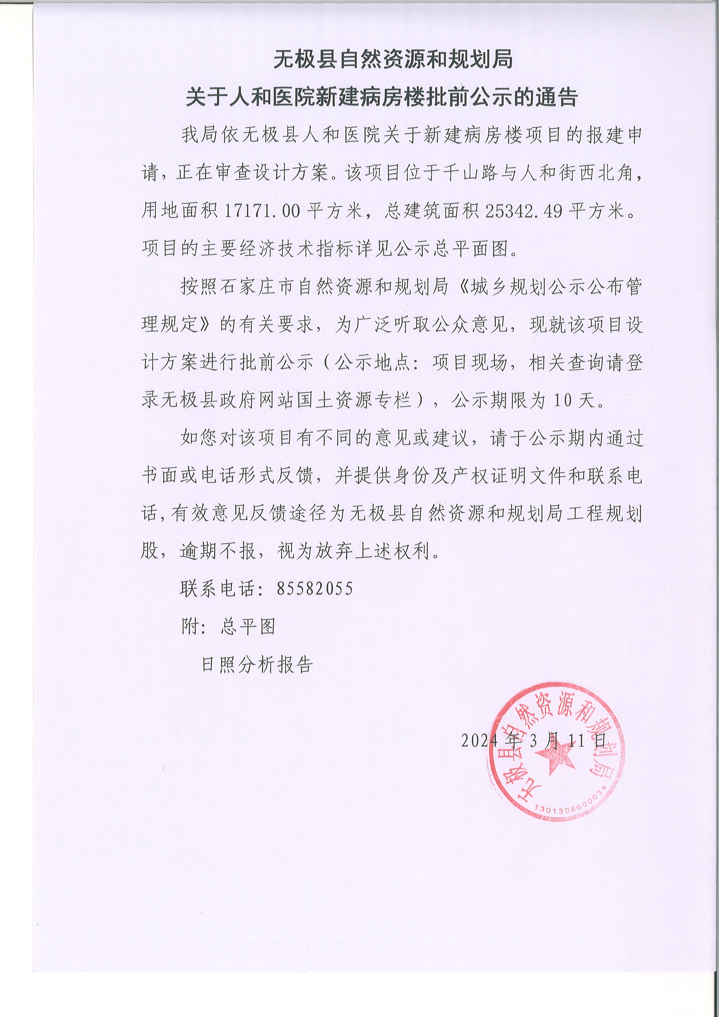项目名称:无极人和医院新建病房楼委托单位:无极人和医院