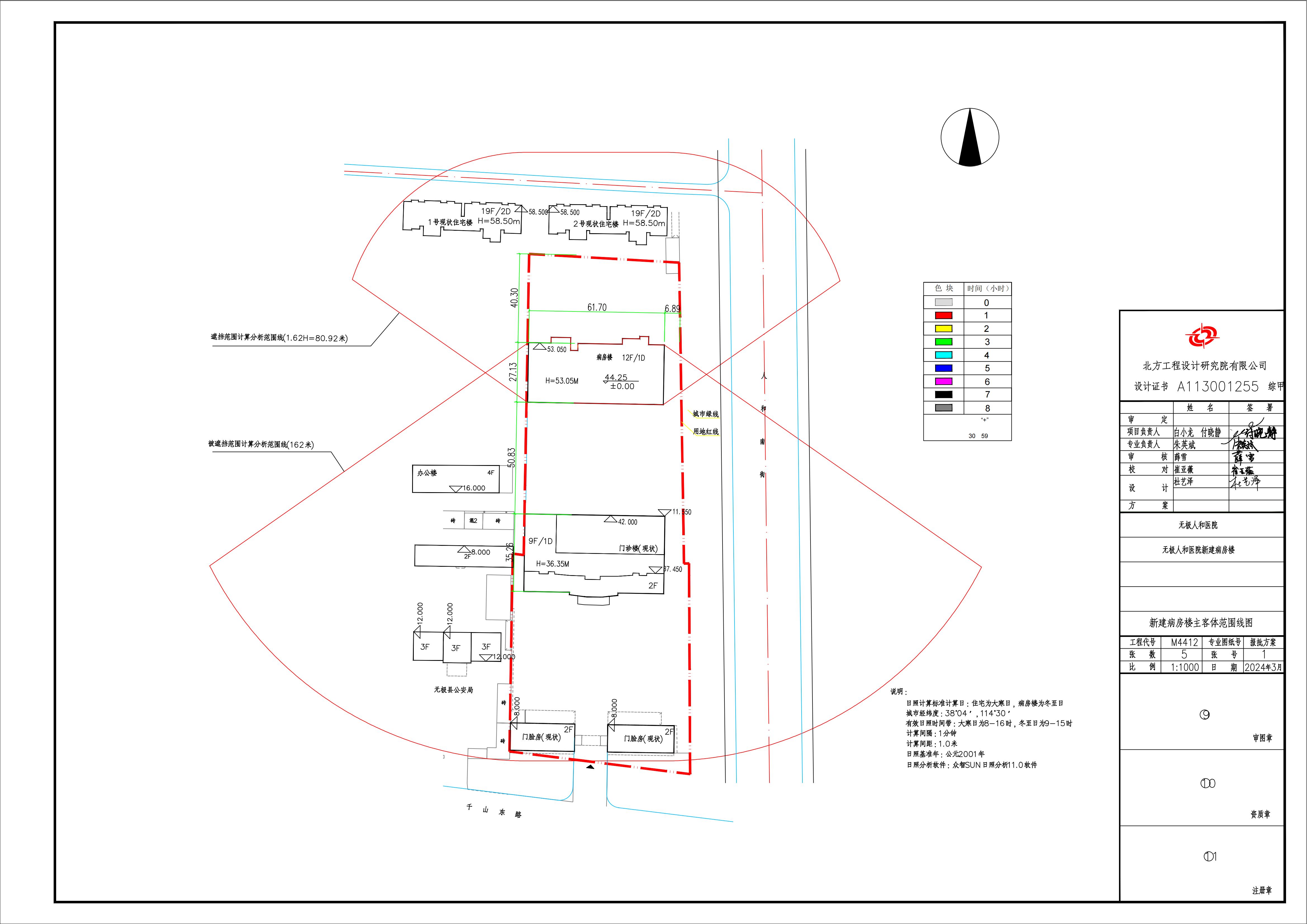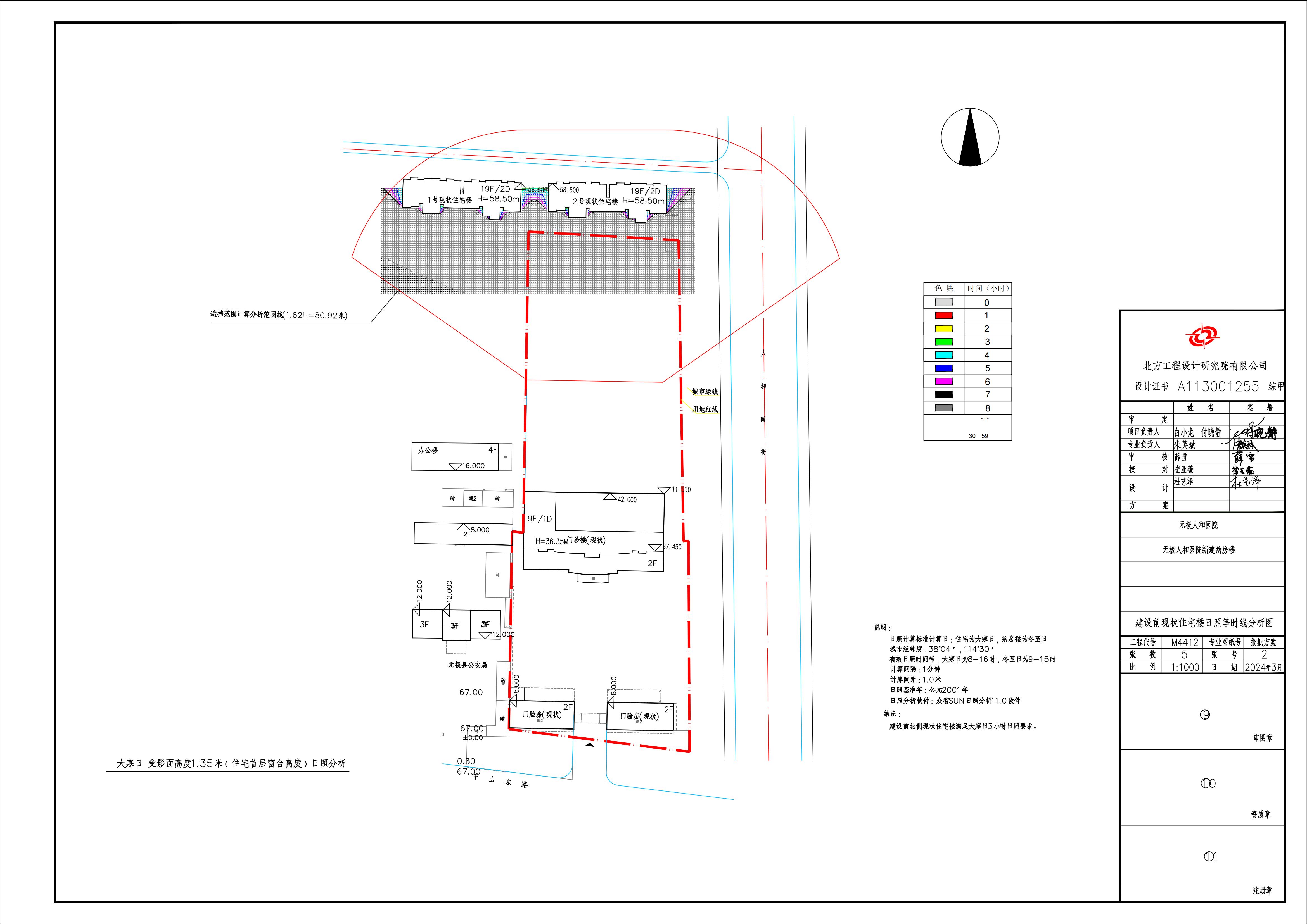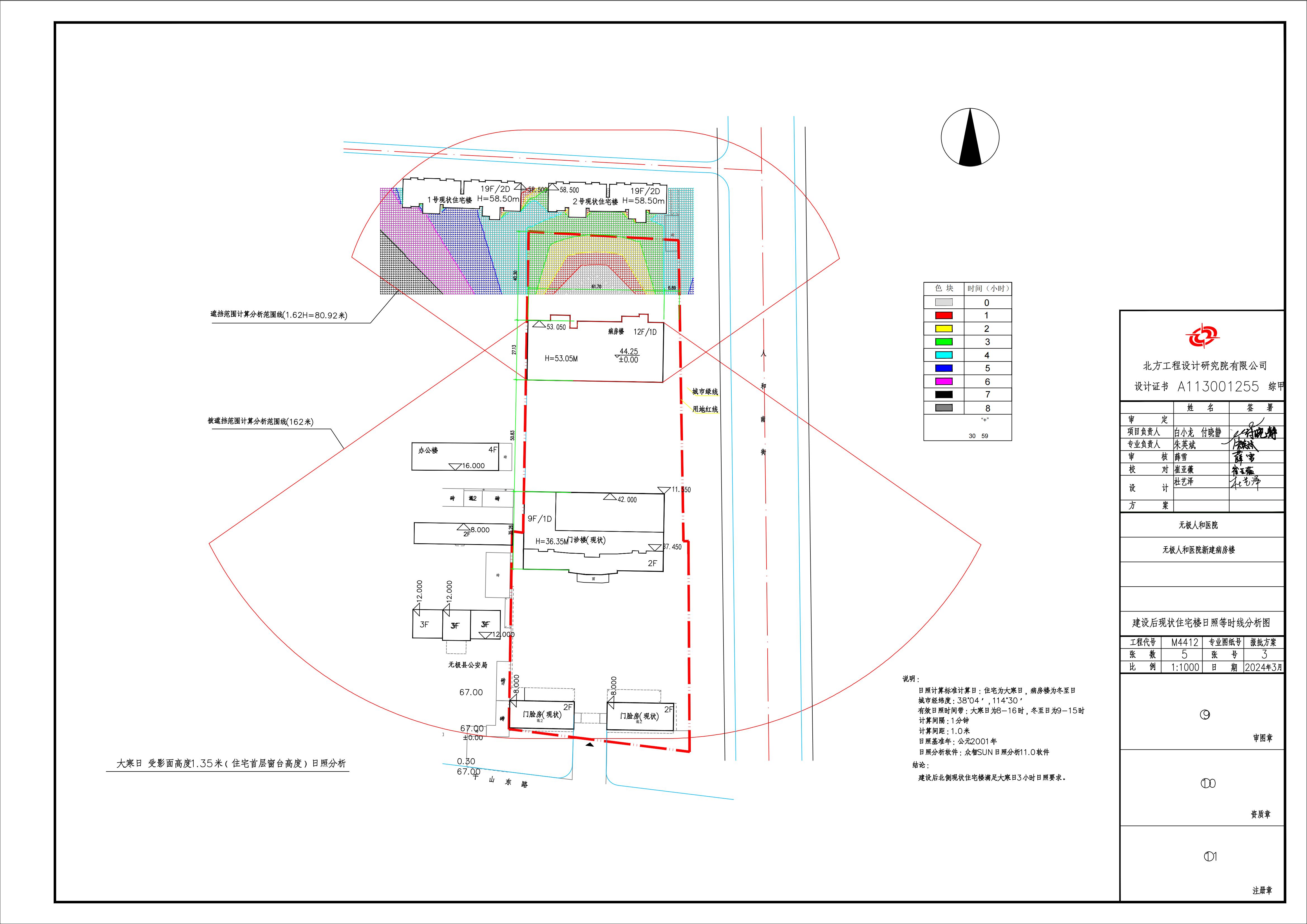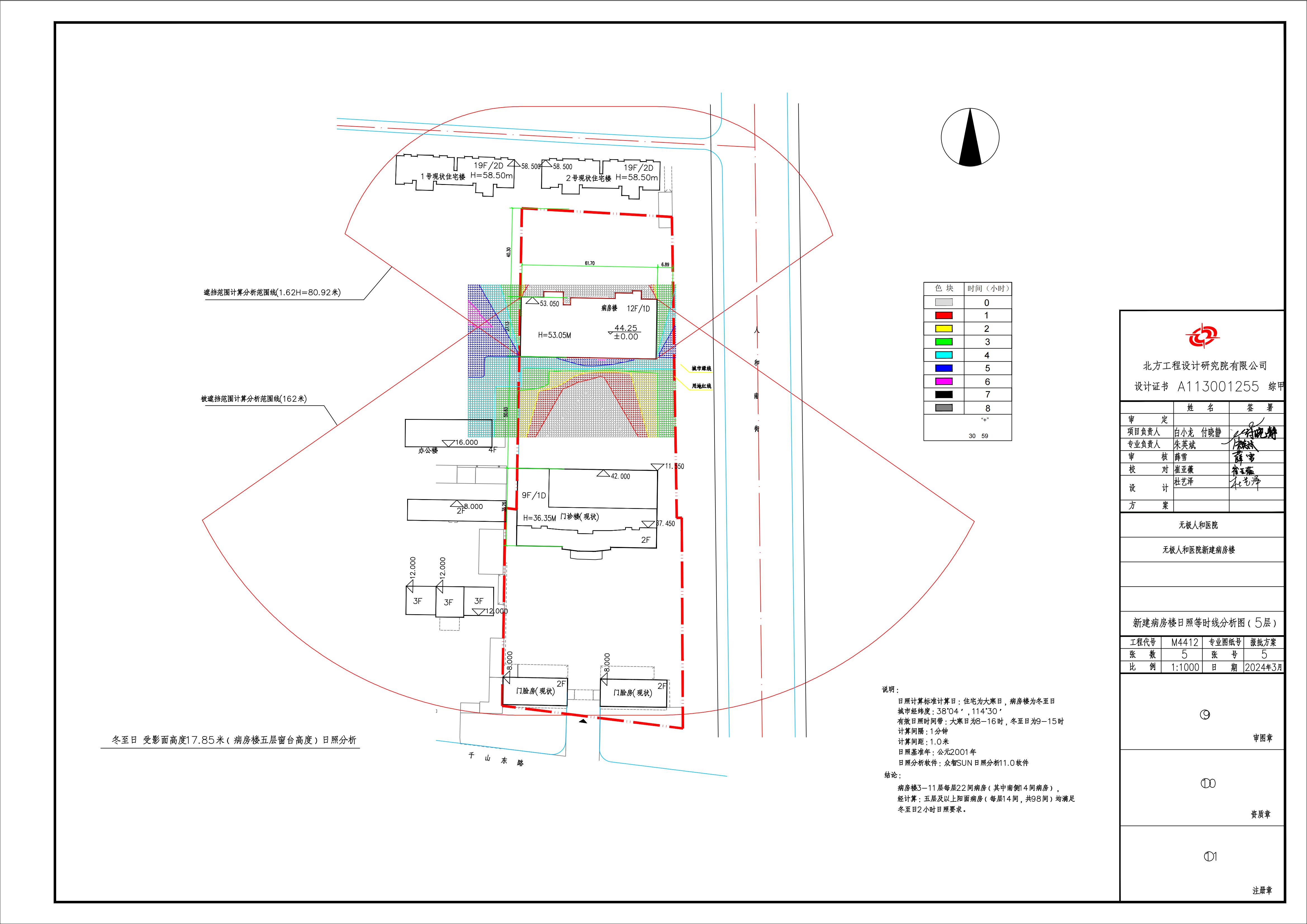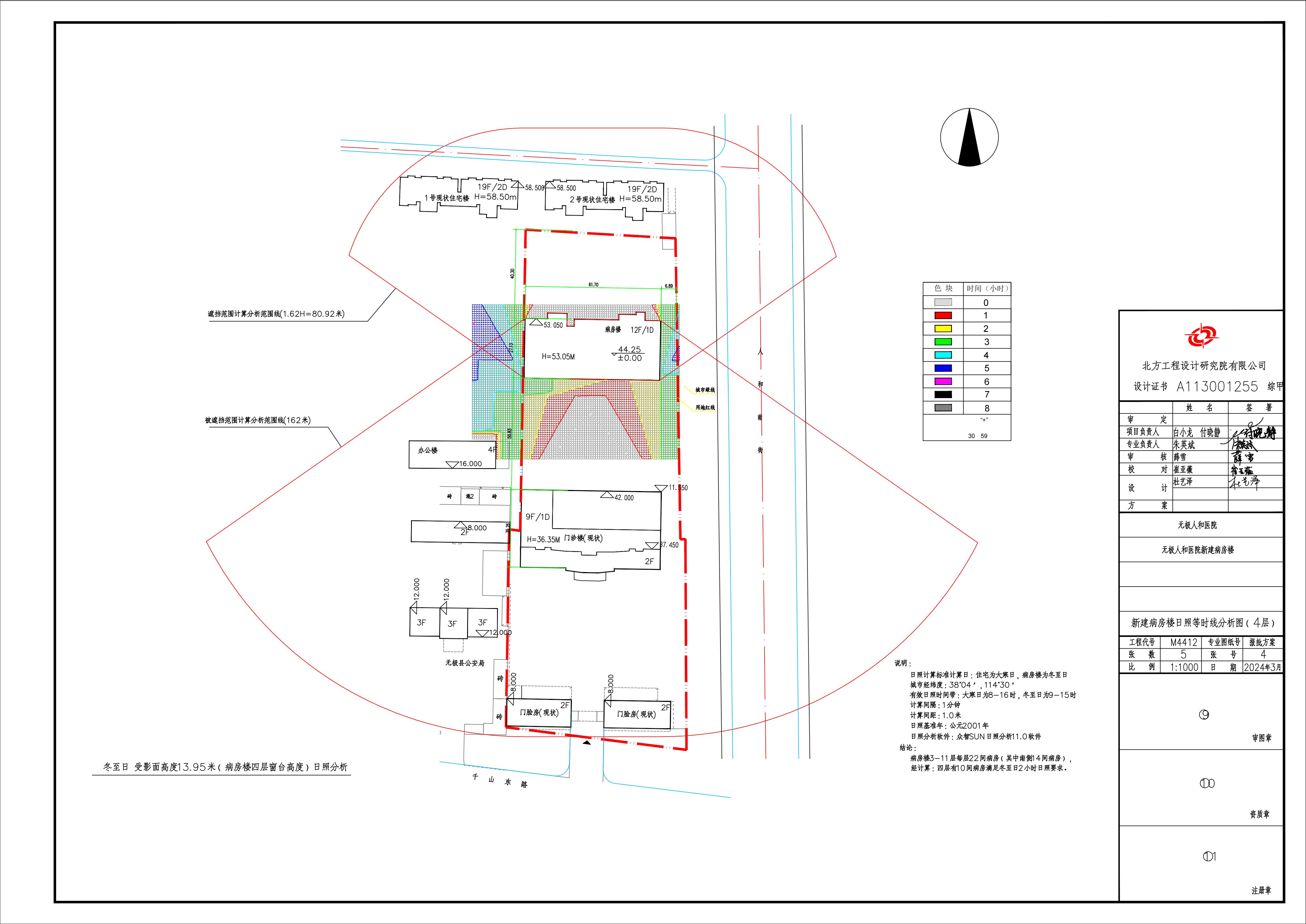 1、四层 10 间及五至十一层各 14 间(共 10+14*7=108 间)满足冬至日 2 小时日照要求,占总病房数(22*9=198 间)的 54.5%,满足半数以上病房冬至日 2 小时日照要求。