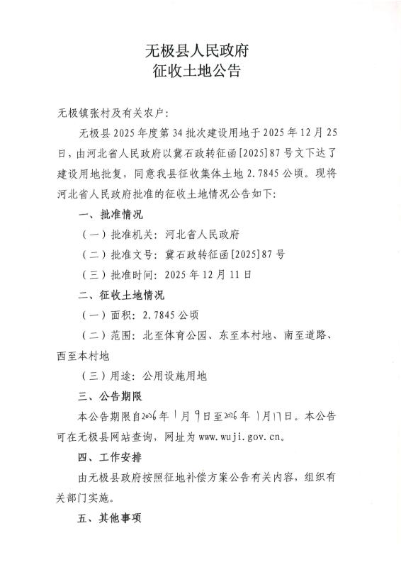无极县2025年度第34批次建设用地征收土地公告