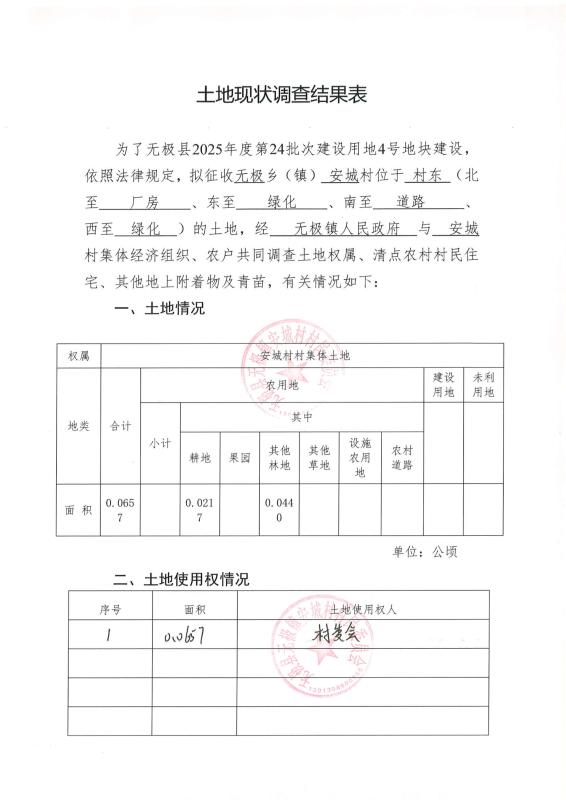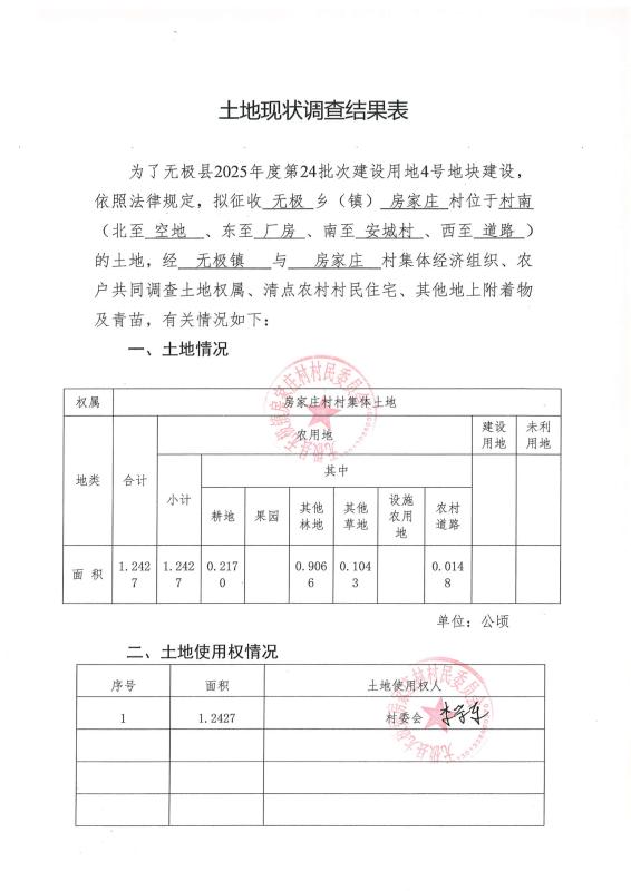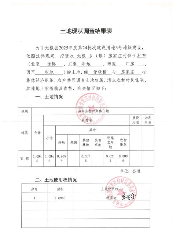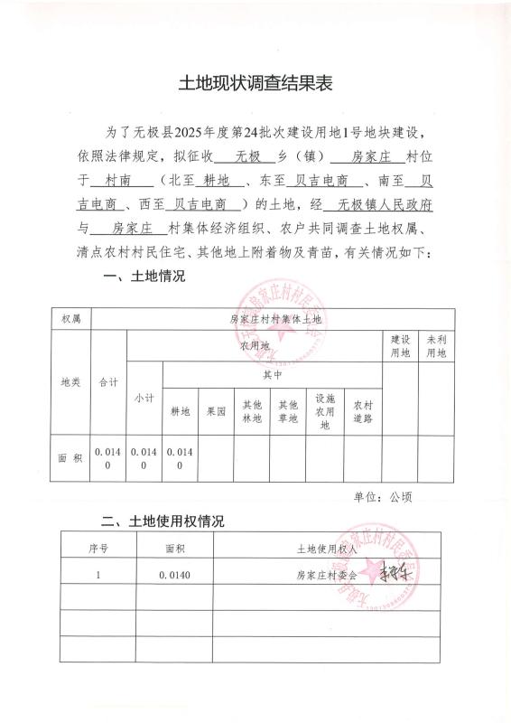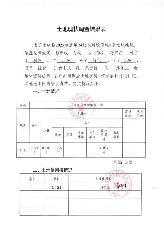 2025年度第24批次1、2、3、4、5号地块建设用地补偿公告土地现状调查表