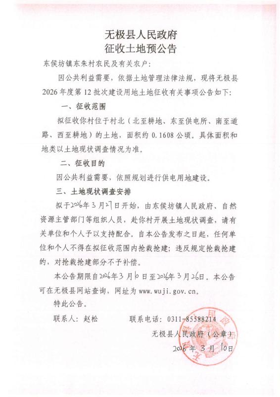 无极县2026年度第12批次建设用地土地征收预公告