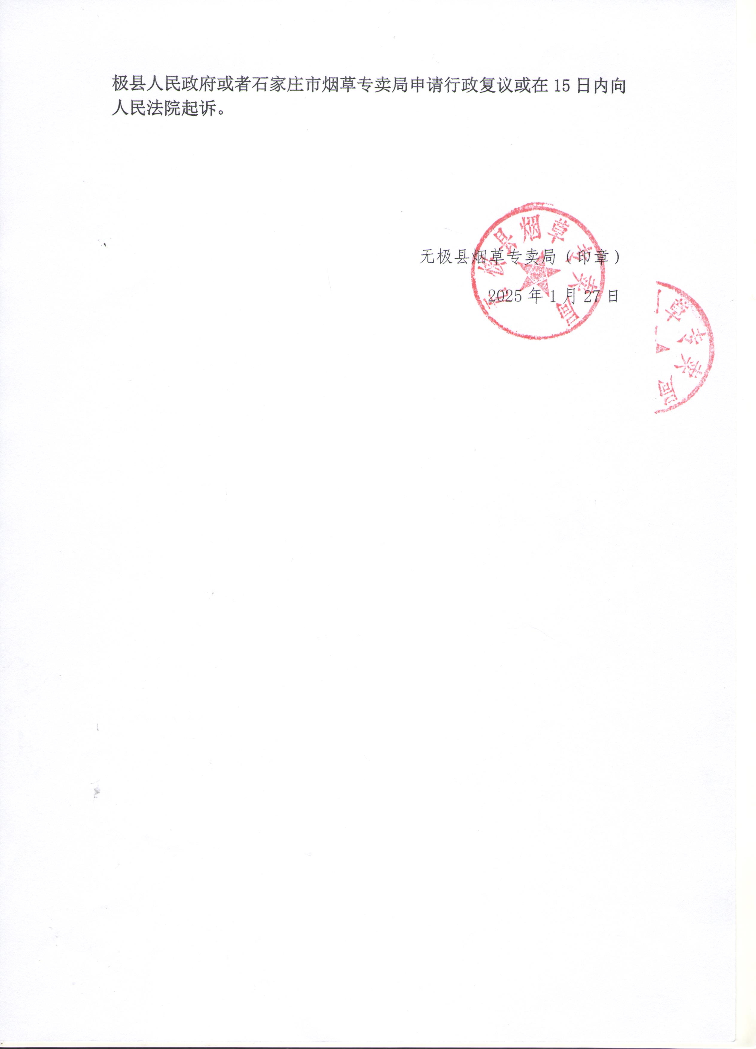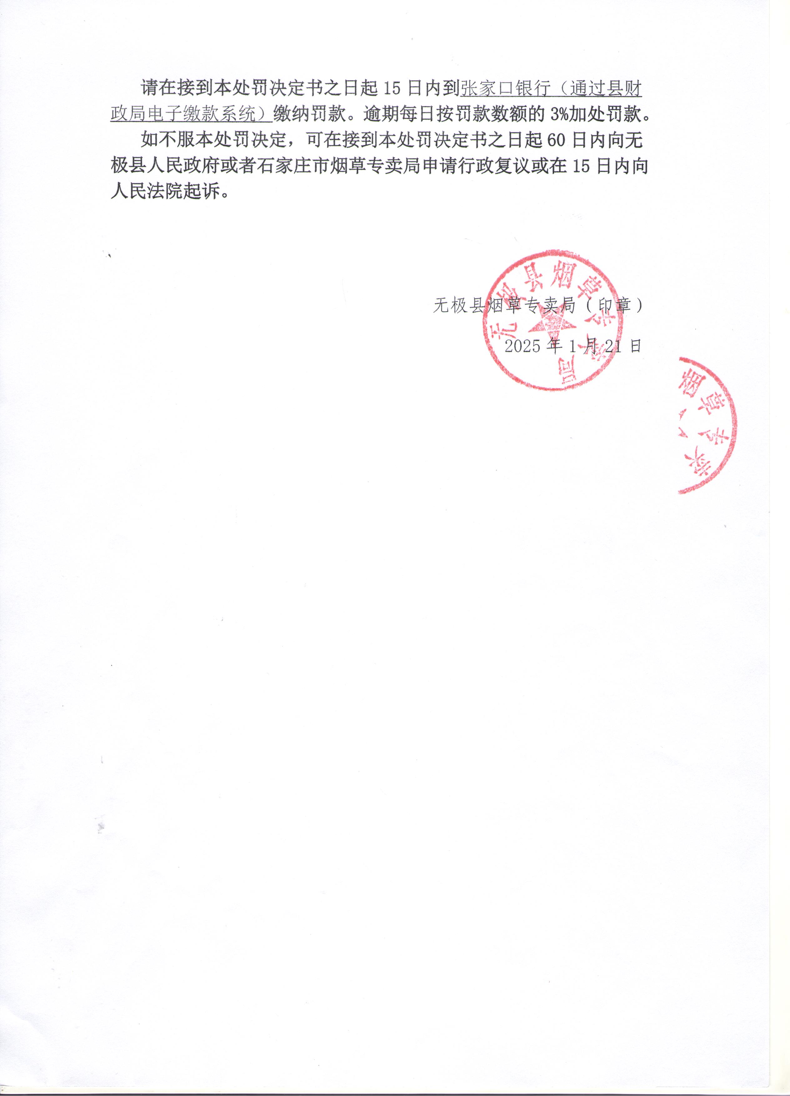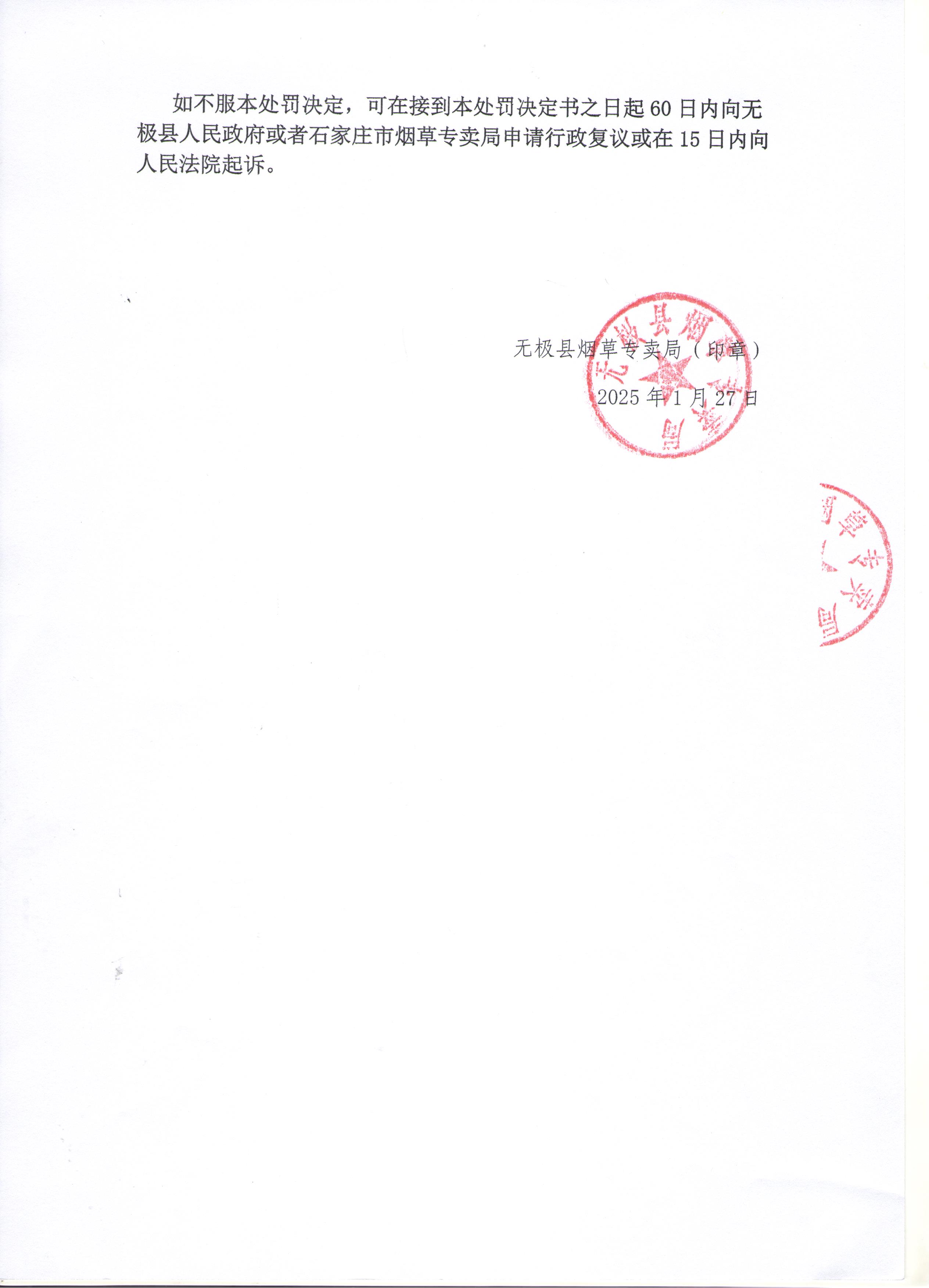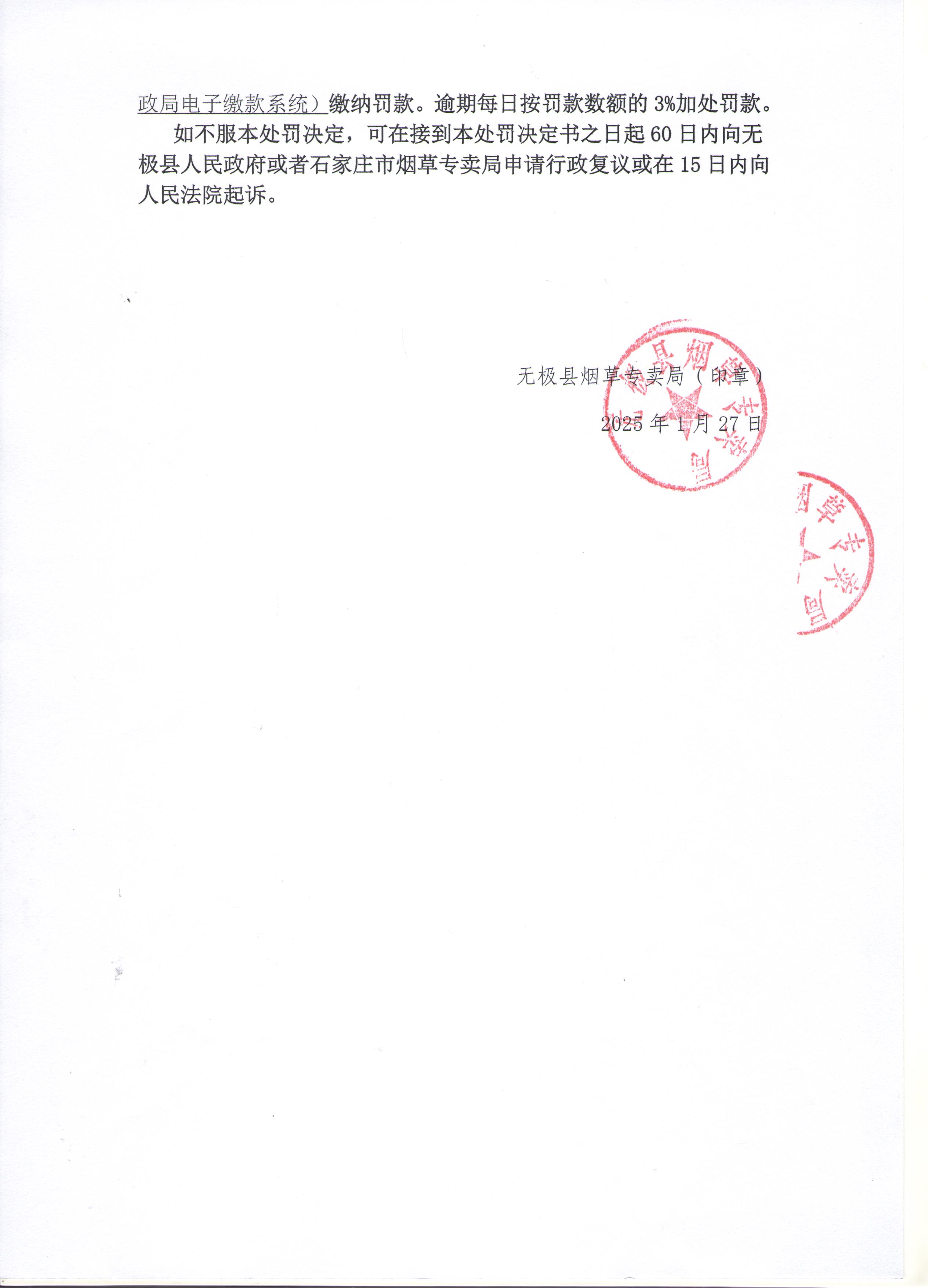 石家庄市无极县烟草专卖局行政处罚决定书(无烟处[2025]第002、003、004、005、006号)