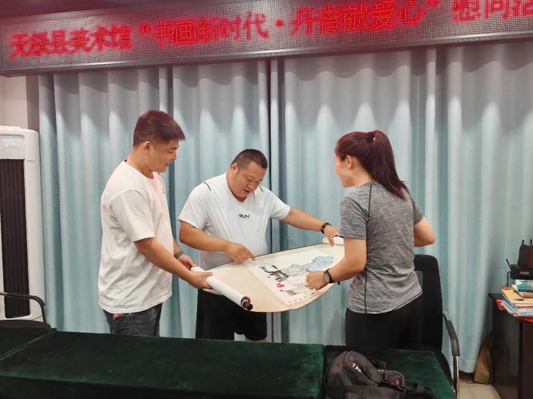 无极县美术馆一行人来到无极县爱心志愿者协会,以书画艺术的形式送去慰问。此次慰问送去了书画家的艺术作品,还捐赠了书籍、团扇等,充分表达了无极县美术馆对爱心志愿者们辛勤工作的感谢,同时,期望更多的爱心人士参与到文化志愿服务中来。