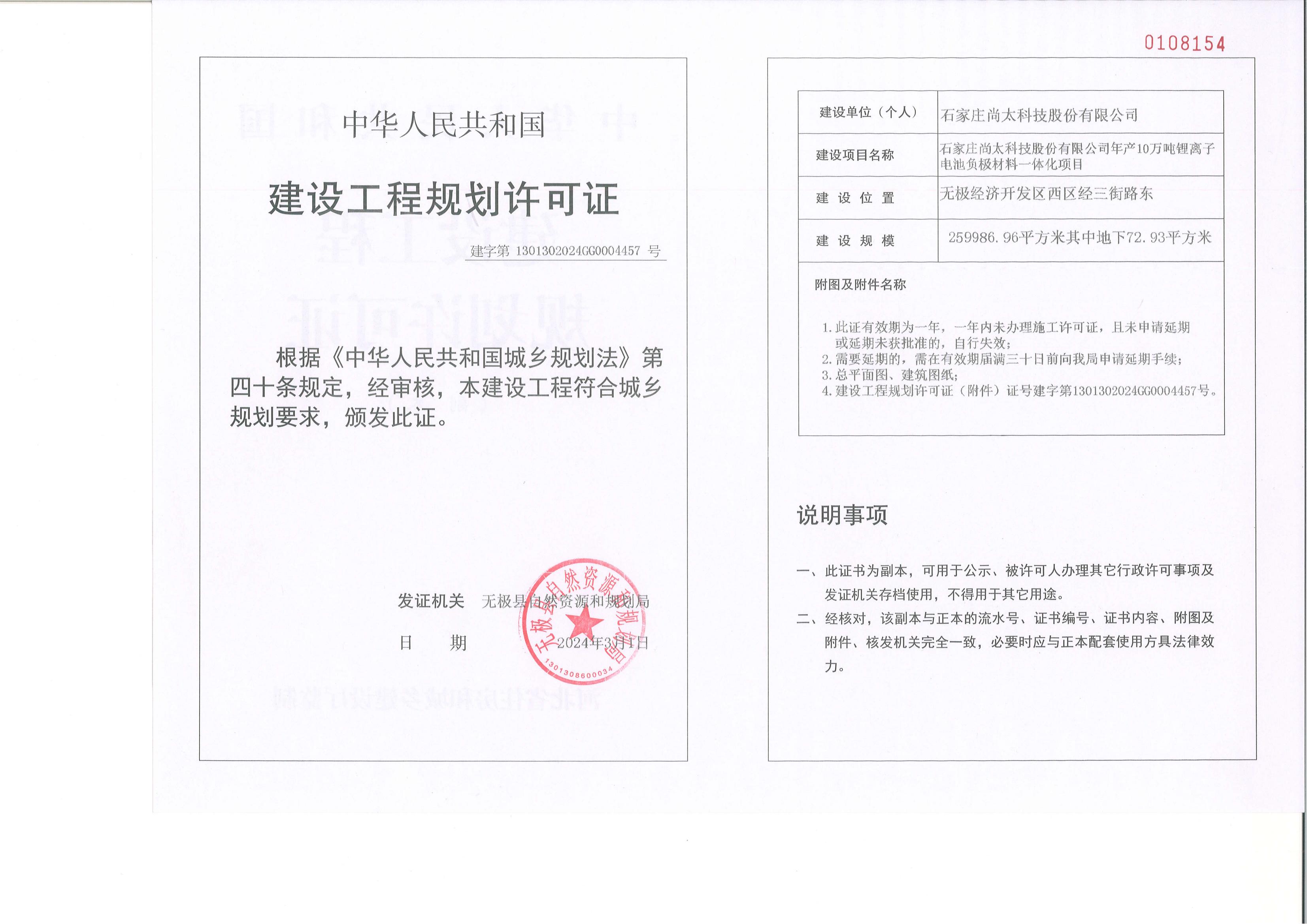 石家庄尚太科技股份有限公司年产10万吨锂离子电池负极材料一体化项目批后公示