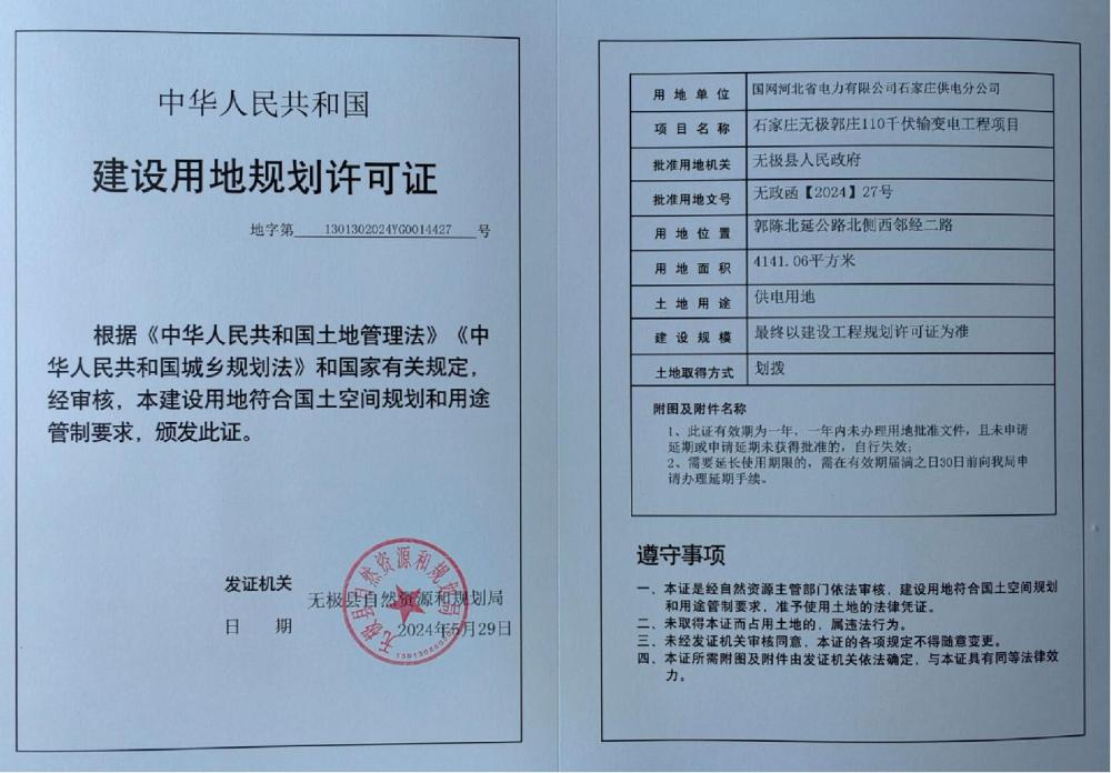 国网河北省电力有限公司石家庄供电分公司石家庄无极郭庄110千伏输变电工程项目批后公示