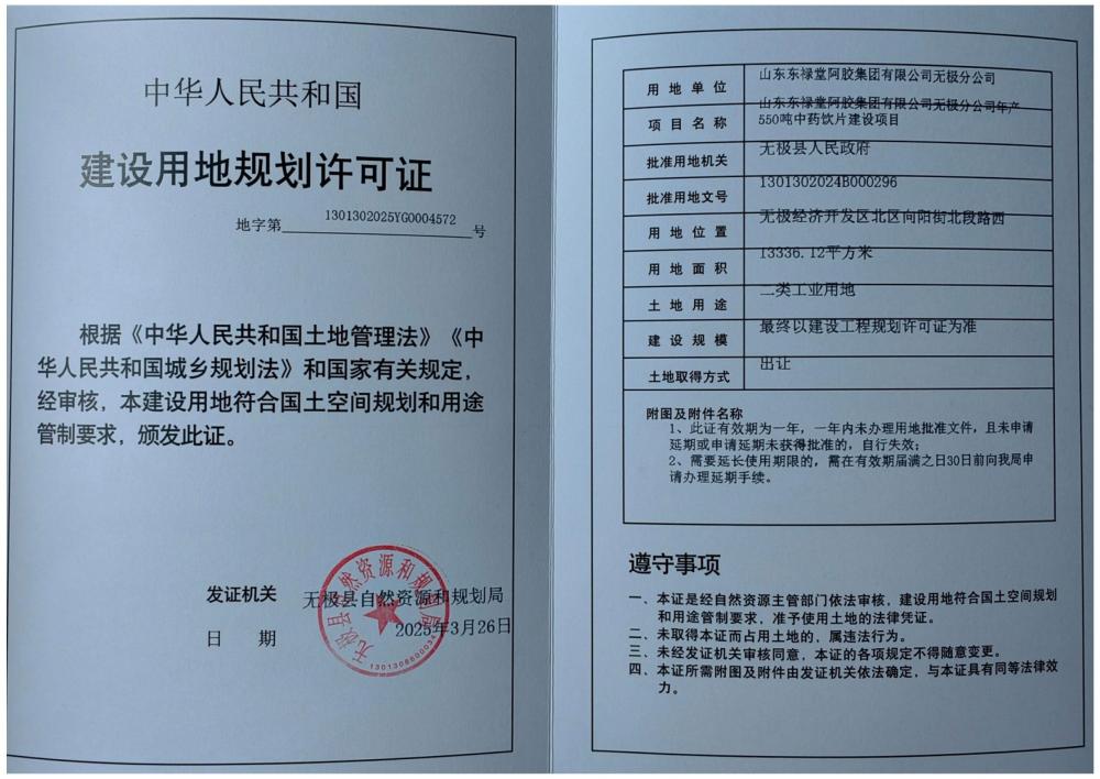山东东禄堂阿胶集团有限公司无极分公司年产550吨中药饮片建设项目批后公示