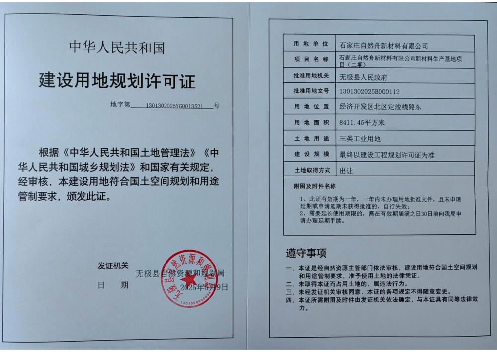 石家庄自然舟新材料有限公司新材料生产基地项目(二期)建设用地规划许可证批后公示