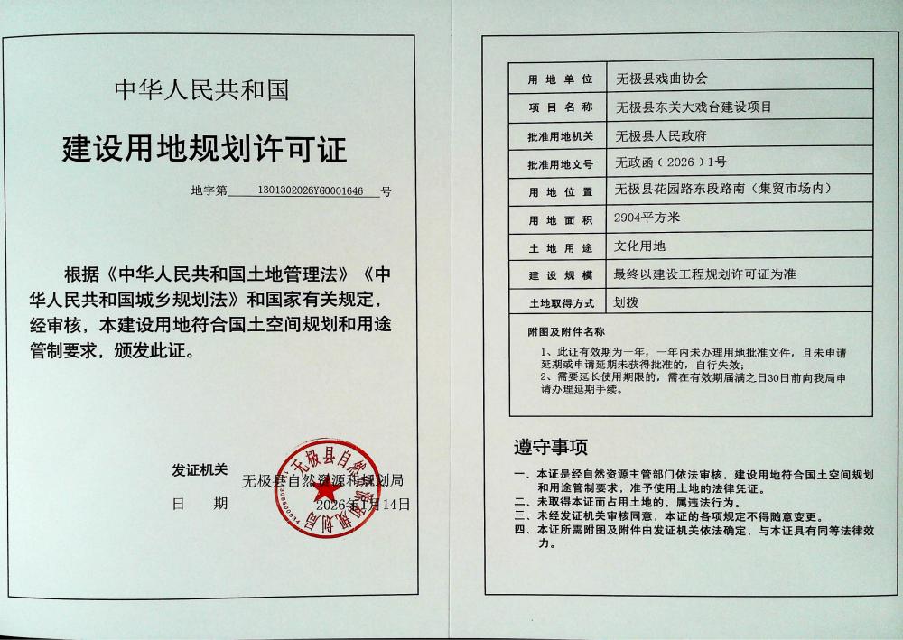 无极县东关大戏台建设项目建设用地规划许可证批后公示