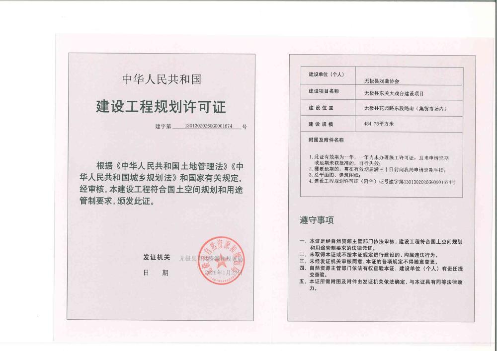 无极县东关大戏台建设工程规划许可证批后公示