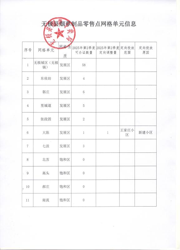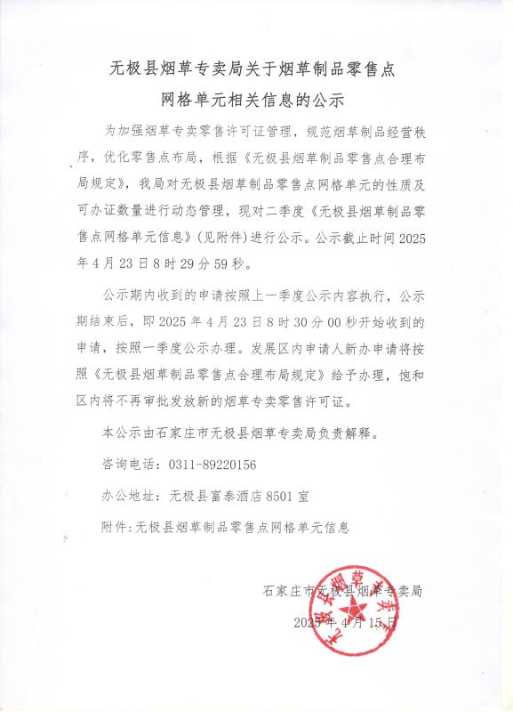 无极县烟草专卖局关于烟草制品零售点网格单元相关信息的公示