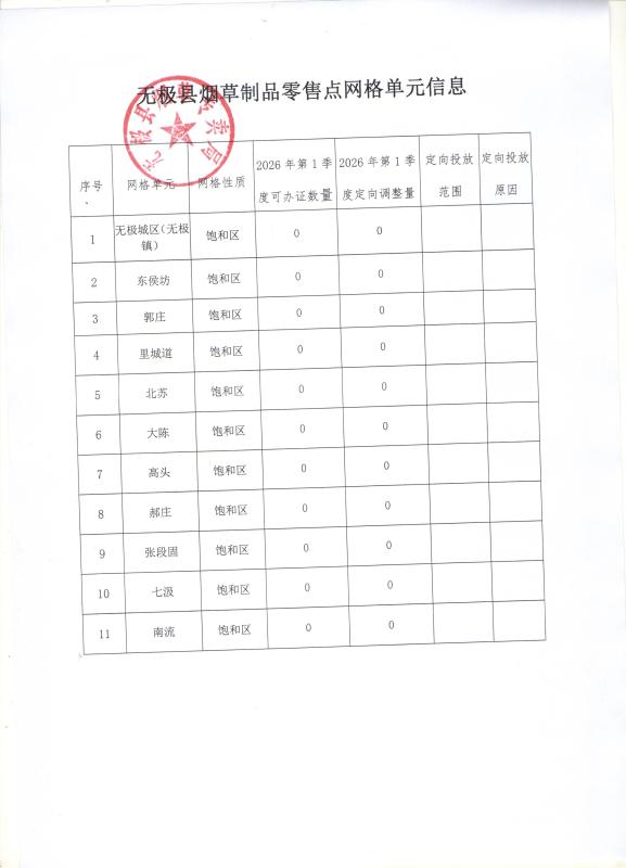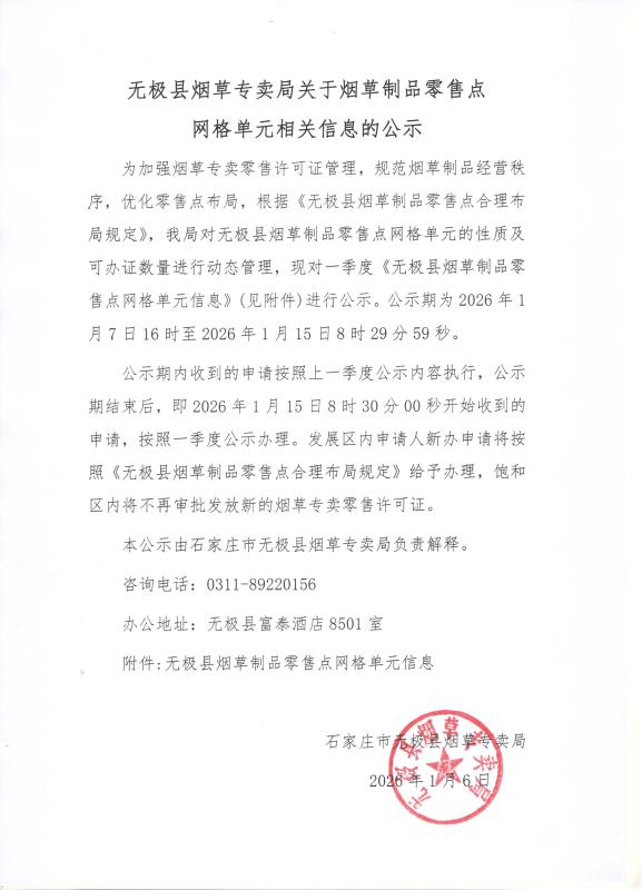 无极县烟草专卖局关于烟草制品零售点网格单元相关信息的公示